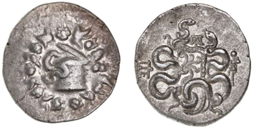g), obv. cista mystica containing serpent, all within ivy wreath, rev.