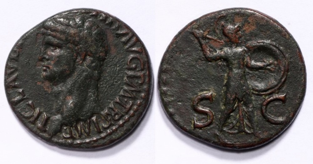 As. Memorial AS, 29mm, 10.64grams. Struck 22-30 AD by Tiberius, RIC 8. near VF. Ex RB 142/1740. | Sold |